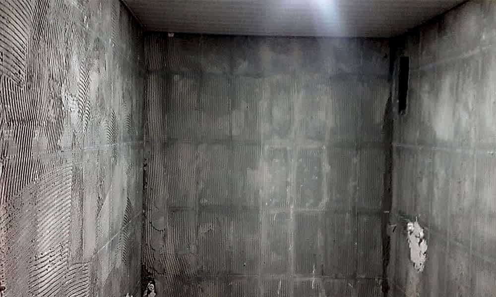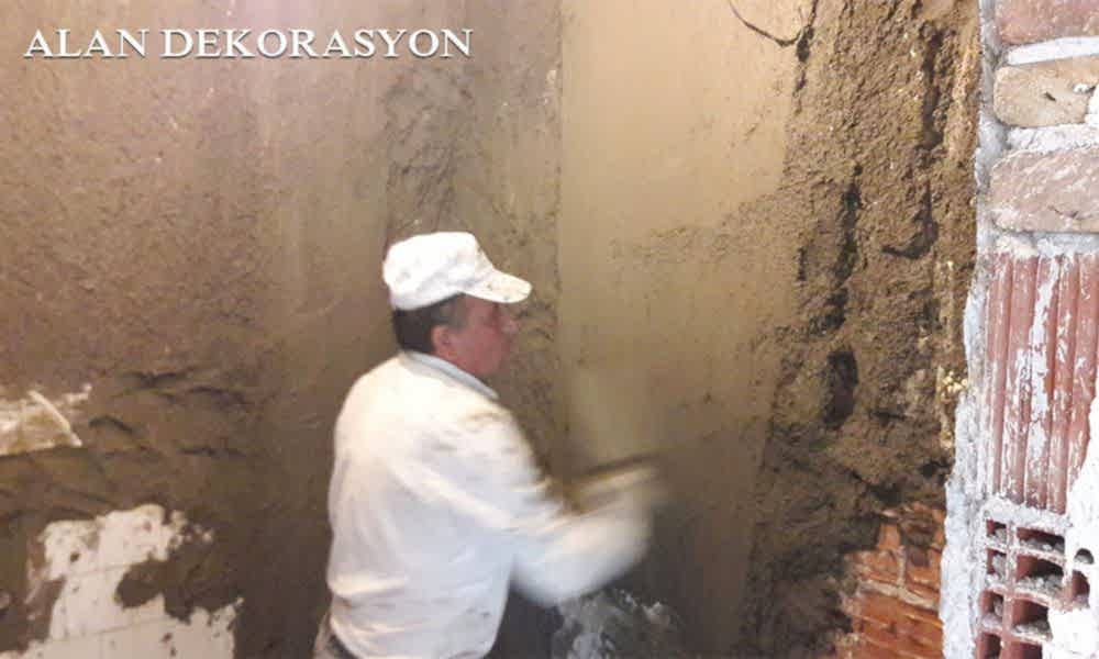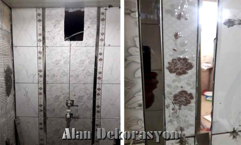 Duvar yüzeylerinde bulunan tüm fayansları temizleyip, hafriyatı attıktan sonra eski yüzeylerde bulunan tüm bozukluklar ve eğrilikleri düzeltmek için mastar ve terazi yardımıyla profesyonel olarak kara sıva işimizi tamamlayıp, yeni fayanslarımızı montaj yapabilmek için gerekli olan düz yüzeyleri elde ettik.