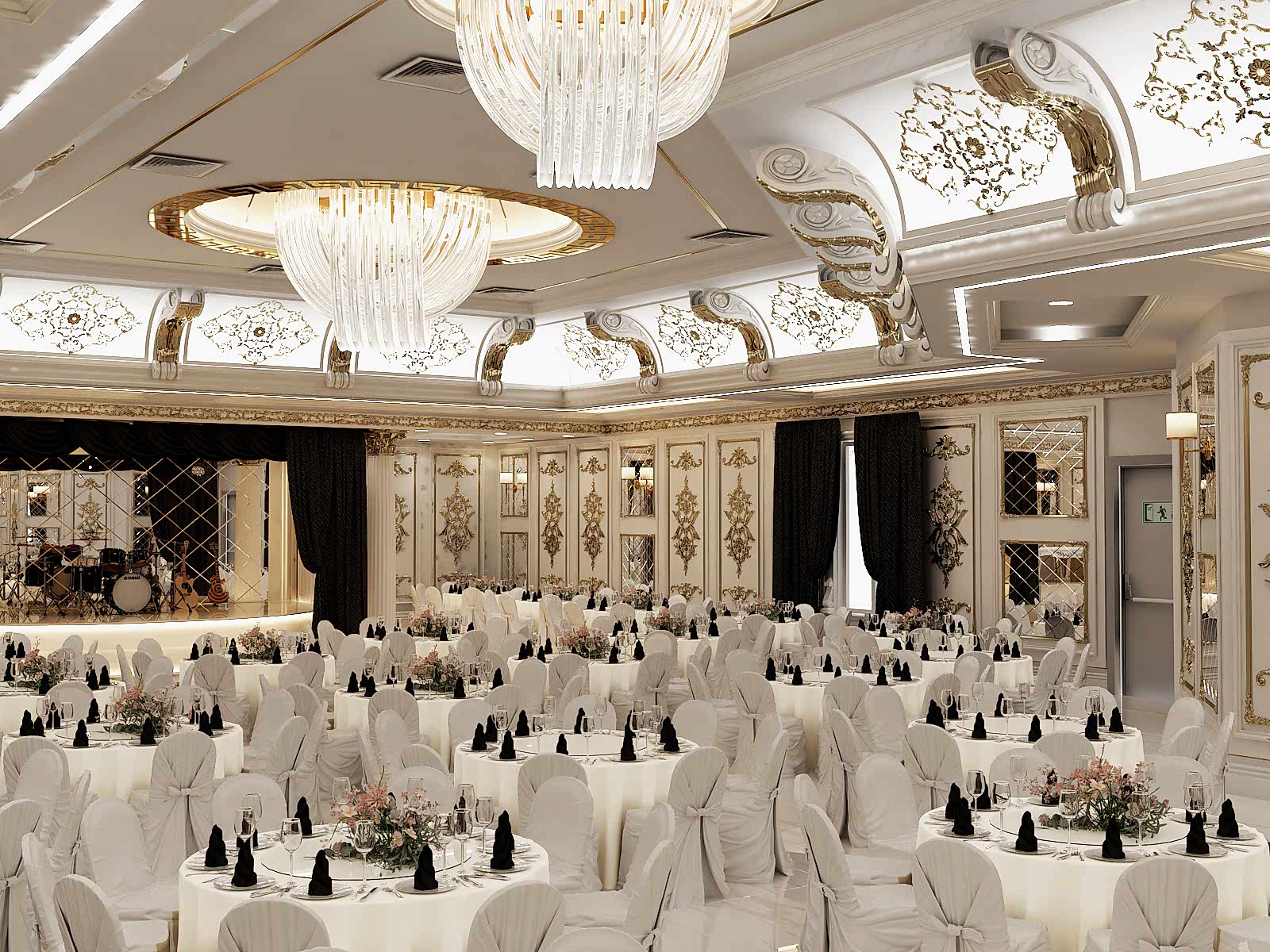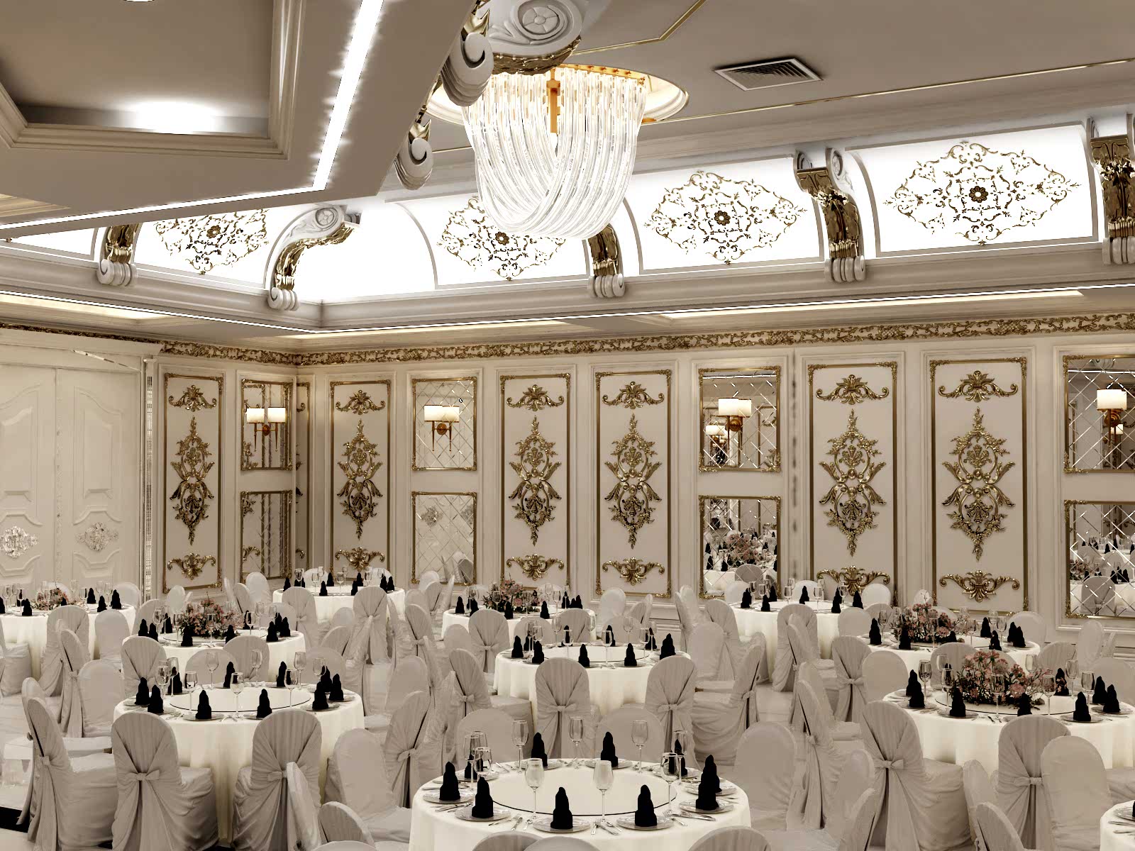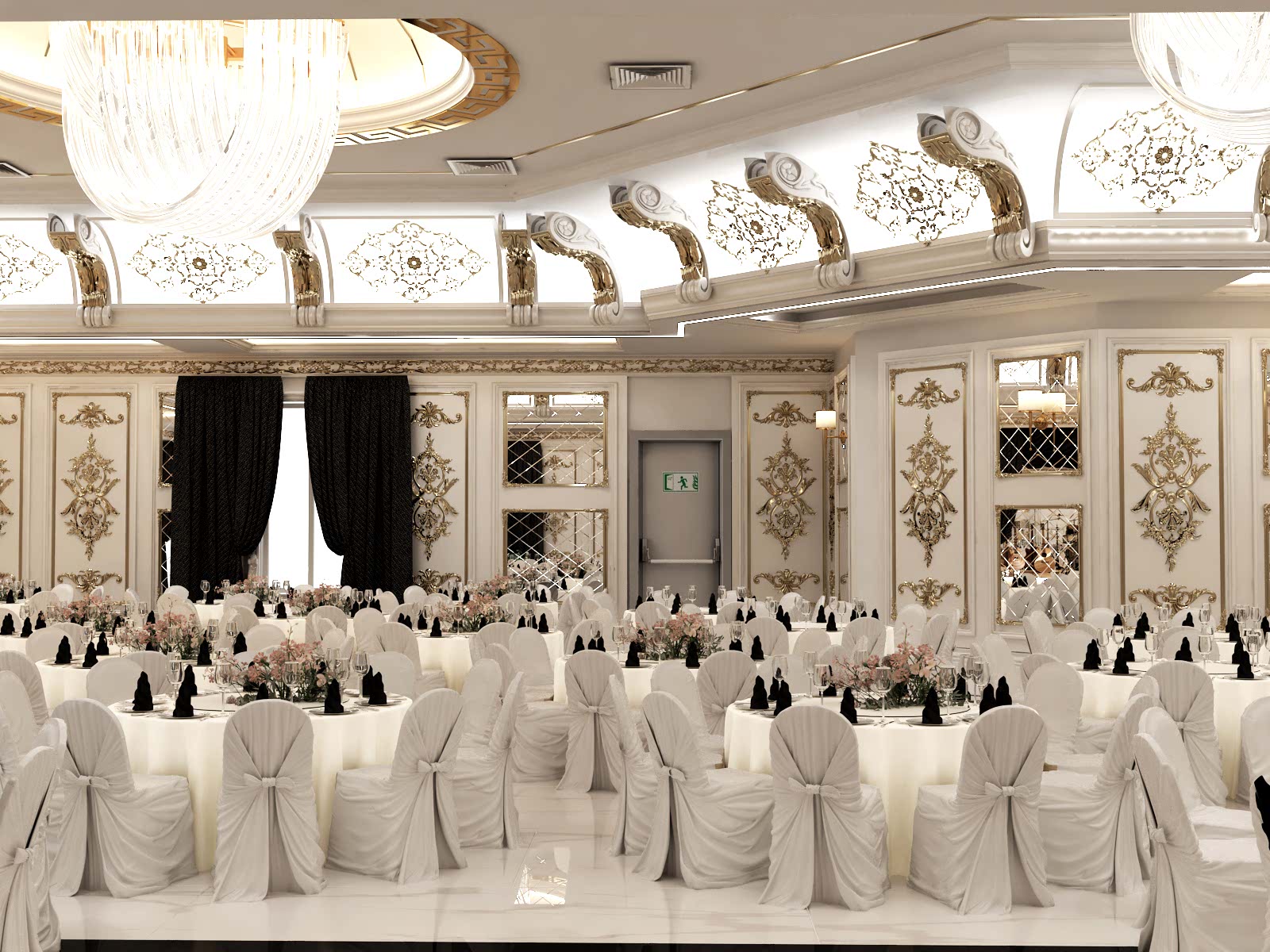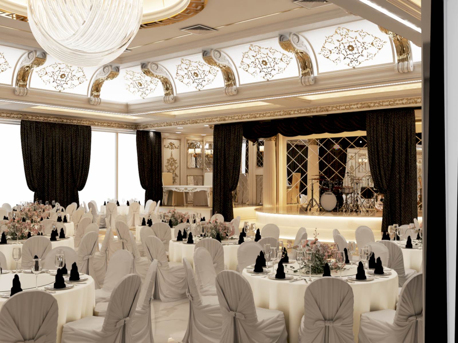 Ultralüks Düğün Salonu Projemizde ana salon 3D modellerimizi incelediniz. Gördüğünüz gibi tüm detayları projemizde belirttik. İncelemiş olduğunuz tasarımımızda her detay uygulamanın malzeme cins, metraj, uygulama biçimi, tedarik ve temin bilgileri ile güncel fiyatlarını da değerli müşterimize ilettik, artık hiç zorlanmayacak.